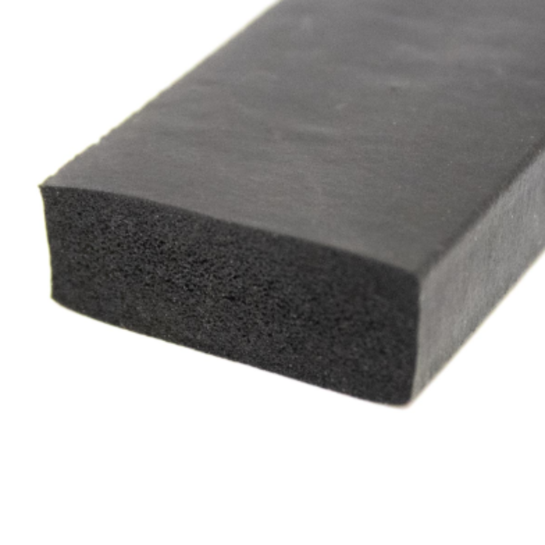 Burlete rectangular esponjoso. Material: Caucho Medidas rollo por 25 metros